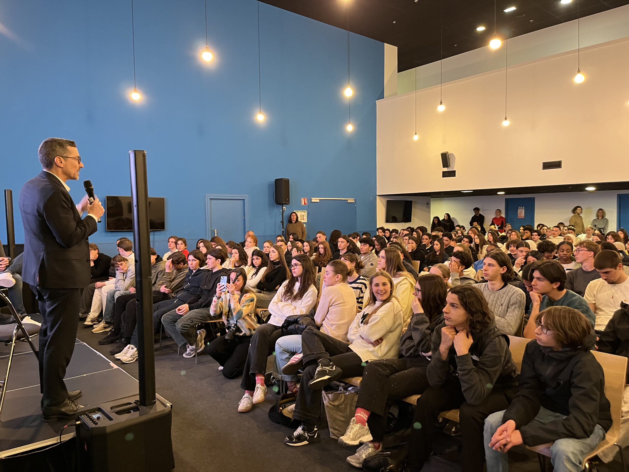 L’autre médaillé olympique présent devant nos élèves est Olivier Bausset. Il a insisté sur l’importance du collectif dans le sport et le mental qu’on se forge, utile pour sa vie professionnelle puisqu’il dirige Cerballiance et son réseau de 700 laboratoires d’analyses médicales.